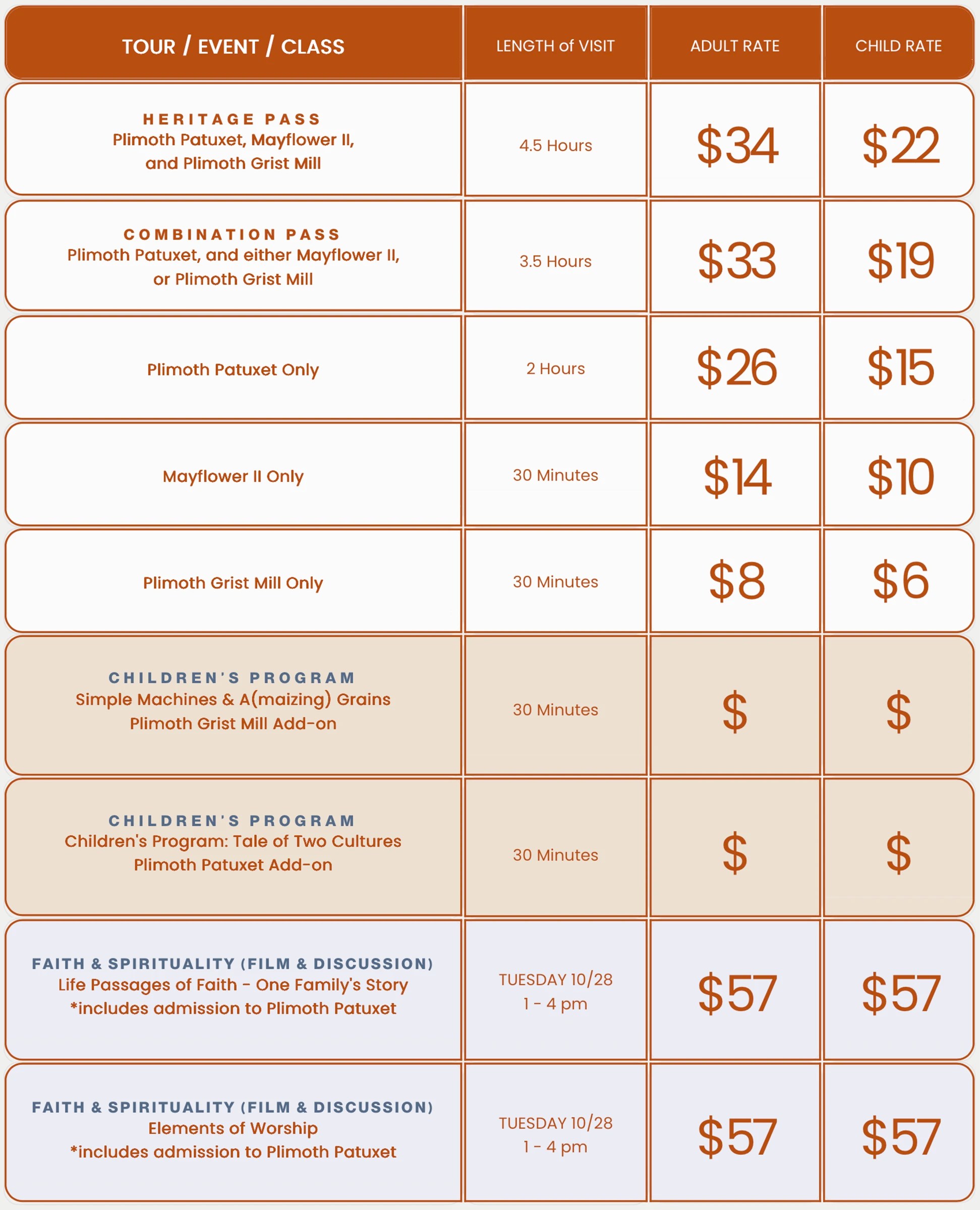 Elements of Worship*includes admission to Plimoth Patuxet